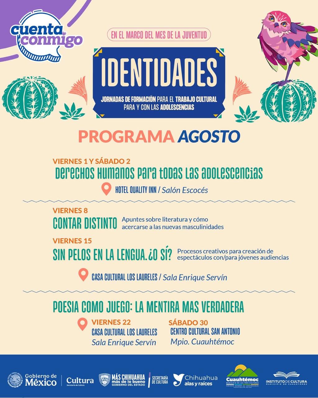 Los cuales serán impartidos en la capital del estado y en ciudad Cuauhtémoc del 2 al 30 de agosto con diversas actividades que promueven los derechos humanos de los adolescentes, literatura y procesos creativos para creación de espectáculos dirigidos a jóvenes audiencias.