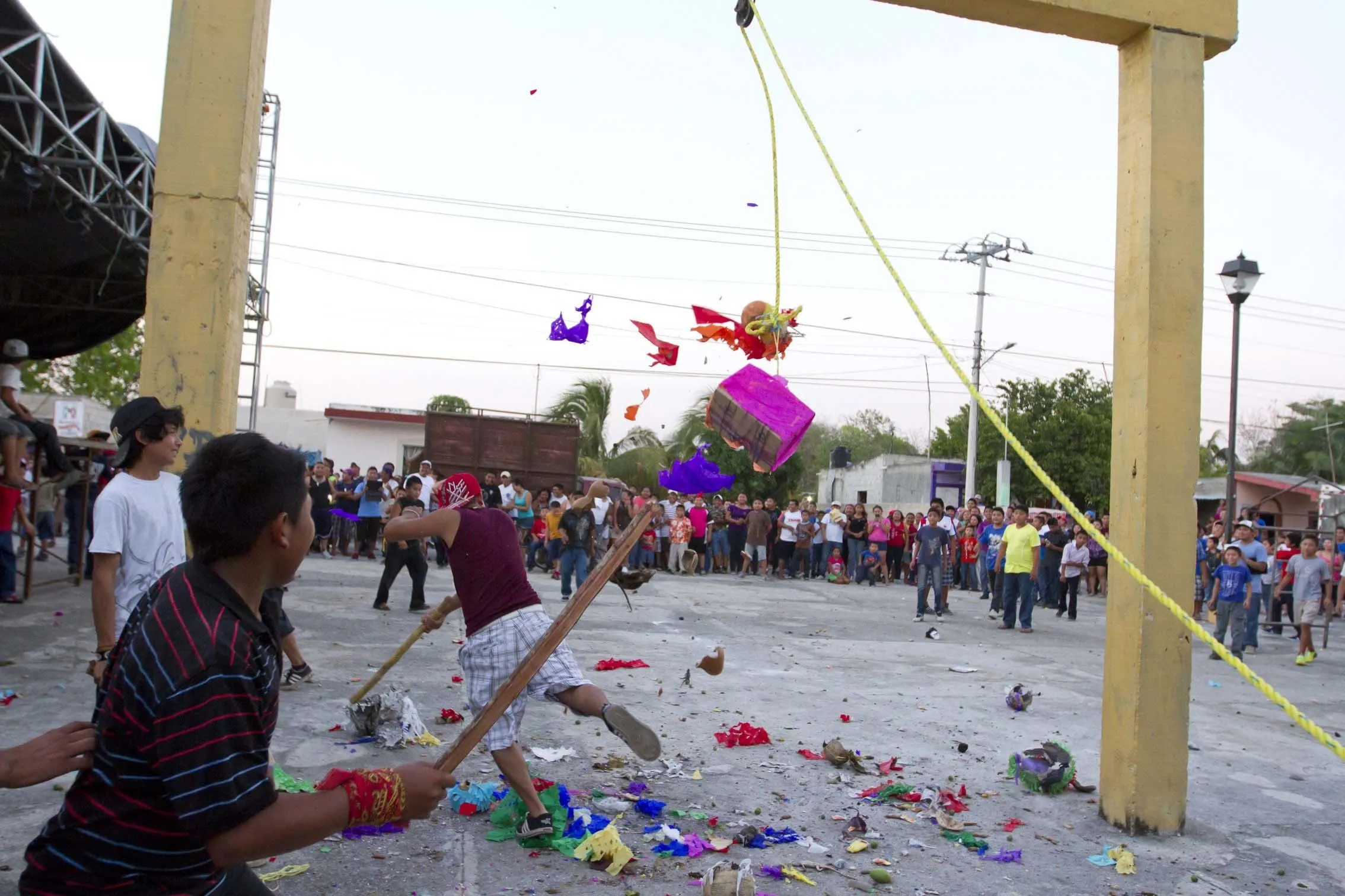 En qué consiste la tradición, bueno, se trata de llenar piñatas con animales vivos, en su mayoría iguanas, y los chiquillos y los adultos pegan con palos como si fuera una tradicional piñata, el problema es que a palazos matan a los animales que al interior se revuelcan intentando sobrevivir, los pocos que no mueren por los golpes a la piñata caen al suelo y aturdidos tratan de correr mientras la gente, incluidos los niños por supuesto, corretean y alcanzan con para luego con los mismos palos, piedras o a pisotones acabar con la vida de los pobres animales.