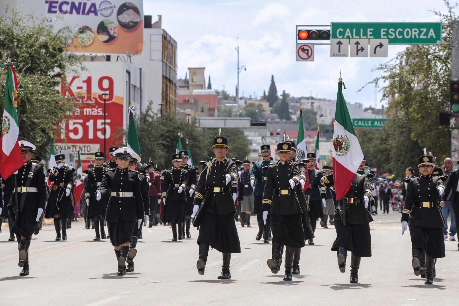 Las comitivas fueron abanderadas por el Ejército Mexicano y la Fuerza Aérea Mexicana, seguidos de la Guardia Nacional y la Secretaría de Seguridad Pública Estatal.
