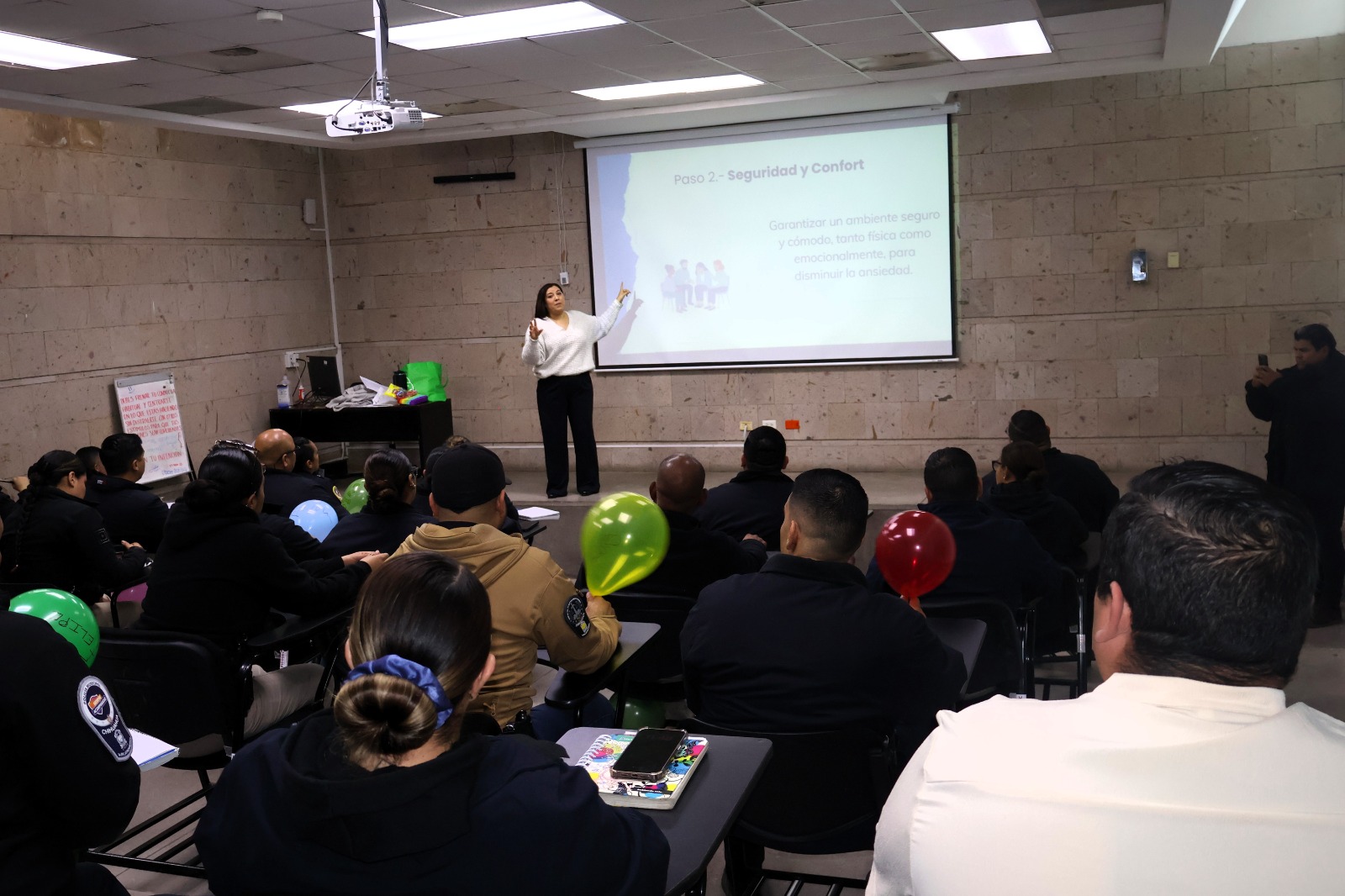 Esta capacitación se divide en dos grupos, conformados por aproximadamente 30 agentes cada uno, y es impartida por psicólogas de las Unidades de Atención a la Violencia (UAVI).